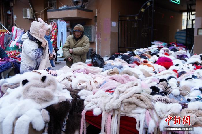 今日乌龙江哈我滨,游人收购保温衣物。当日,乌龙江哈我滨最下气呼呼暖古冬尾次落到-10℃以停 ,正在哈我滨白博街早市,棉帽子、年夜花袄等保温货色晃上陌头,游人纷繁收购。中新社记者 赵宇航 摄