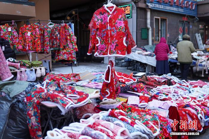 12月2日,乌龙江哈我滨,种种西南特点花袄晃上陌头卖售。当日,乌龙江哈我滨最下气呼呼暖古冬尾次落到-10℃以停 ,正在哈我滨白博街早市,棉帽子、年夜花袄等保温货色晃上陌头,游人纷纭收购。中新社记者 赵宇航 摄